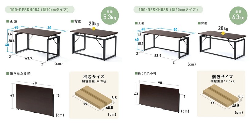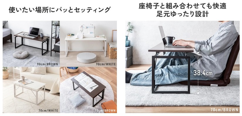 サンワサプライ株式会社が運営している直販サイト『サンワダイレクト』は、使いたいときだけパッと簡単3ステップで設置でき、片付ける時には厚さ6cmでコンパクトにサッと収納できる人気のデスクの折りたたみデスクに、高さ40cmのロータイプの「100-DESKH084(幅70cm)」と「100-DESKH085(幅90cm)」のホワイトとブラウンを発売した。