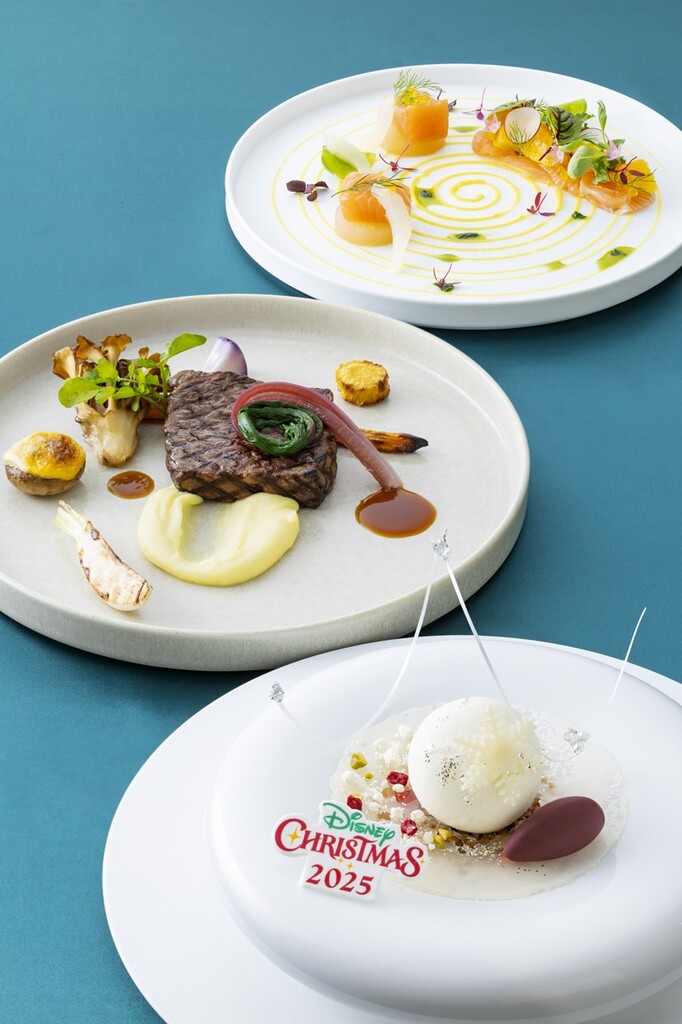 ディズニーアンバサダーホテル、東京ディズニーシー・ホテルミラコスタ、東京ディズニーランドホテルの3つのレストランでは、2025年11月1日(土)から12月25日(木)までの間、スペシャルイベント「ディズニー・クリスマス」をテーマにしたスペシャルメニューをご用意します。美しく彩られたクリスマスならではのメニューを堪能できる。