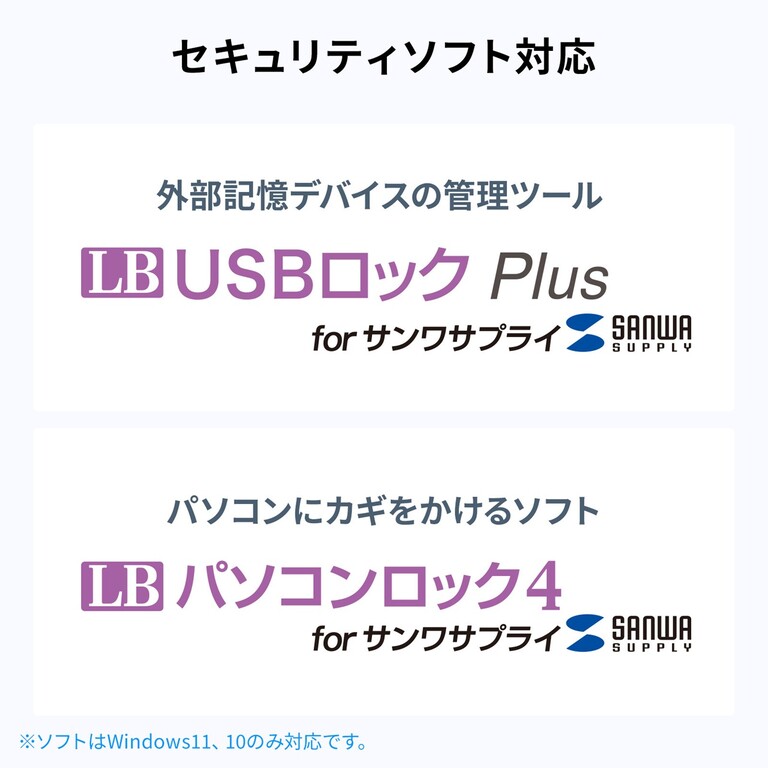 情報漏洩からデータを守る、各ソフトに対応している。※ソフトはWindows 11、10のみ対応。