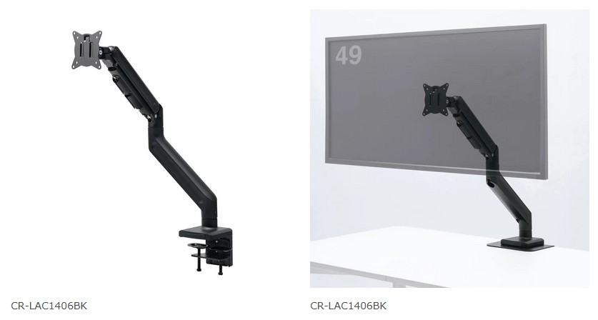 ■モニターアーム(ガススプリング式・耐荷重20kg)「CR-LAC1406BK(ブラック)」