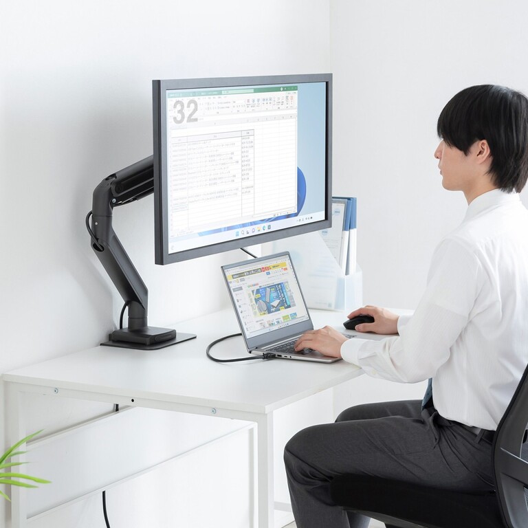 3関節それぞれが可動するので、デスク環境や目線に合わせてベストな形に変化させられる。