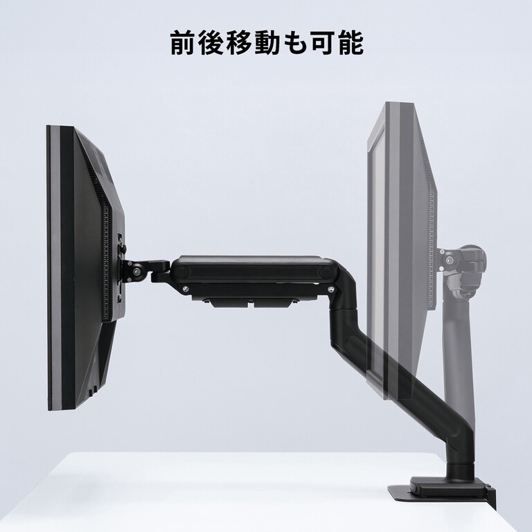 手で軽く押したり引いたりするだけで、モニターの位置や角度を自在に調整できる。