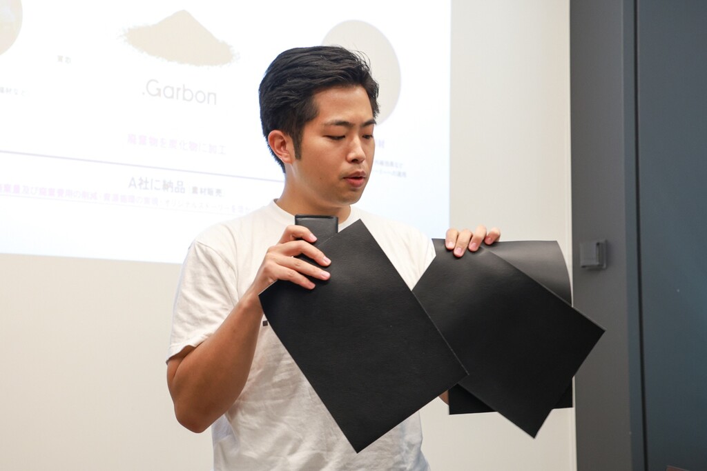 株式会社Gabは、炭化技術によって、これまで再利用が困難だった廃棄物を独自のプロセスで炭化し、人工レザーをはじめとする多様な"選べる素材(再資源)"へと変換する新循環ソリューション「.Garbon(ガーボン)」を2025年9月10日(水)に始動した。その発表に先がけて、9月9日(火)にメディア向けの先行発表ラウンドテーブルを開催し、同社代表の山口萌斗氏が登壇した。
