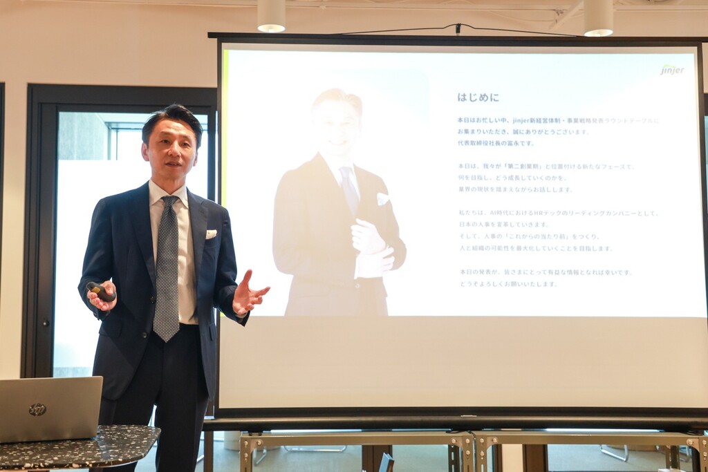 jinjer株式会社は、第二創業期を見据えた新経営体制と、人事業務における直近3年のAI構想を筆頭とした事業戦略を、9月10日(水)に開催された「jinjer 新経営体制・事業戦略発表ラウンドテーブル」にて発表した。