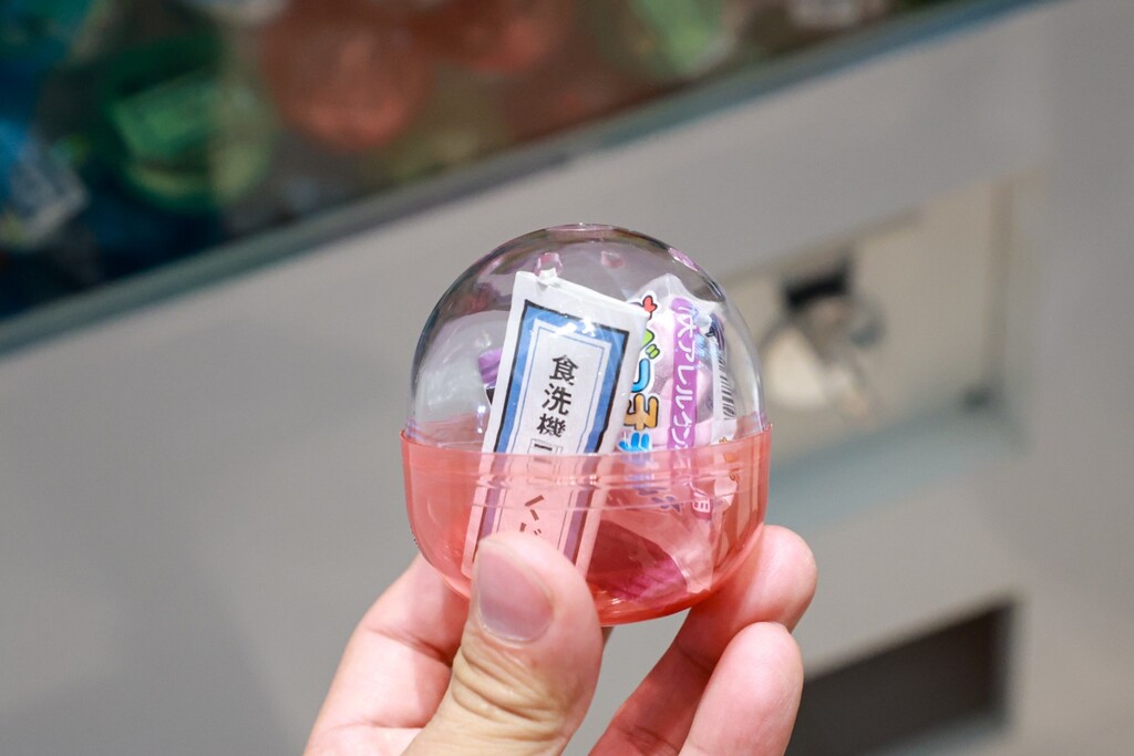 そのほか、会場には巨大ガチャが登場し、洗い流し体験の後には「食洗機おみくじ」を引くことができた。おみくじには、大阪弁でモヤモヤを吹き飛ばすようなスカッとした一言が記されており、参加者はユニークな演出を楽しんでいた。