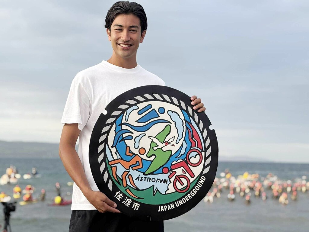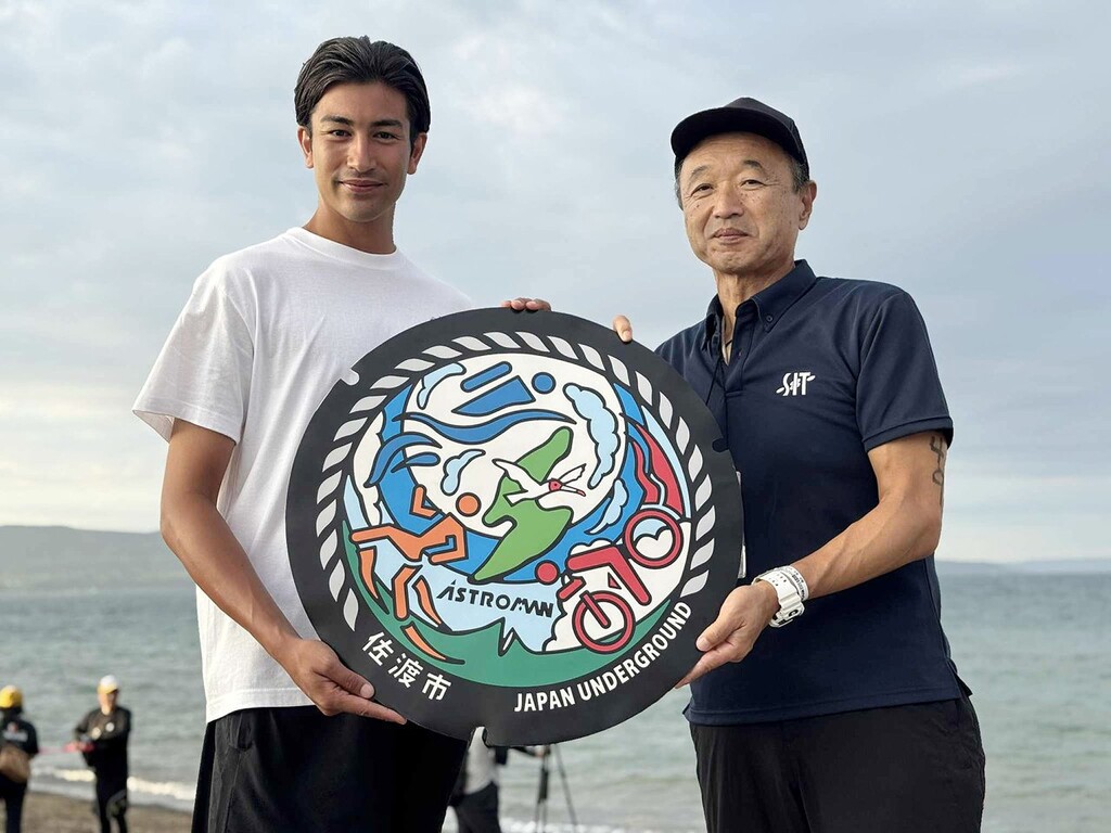 株式会社TAK JAPANが展開するブランド「JAPAN UNDERGROUND」は、2025年9月、佐渡市にてブランド初となるオリジナルデザインマンホールを設置した。2025年9月7日(日)に開催された「佐渡国際トライアスロン大会の開会式」では、代表の足立が登壇し、これまでの挑戦と本プロジェクトの意義を来場者に直接伝えた。