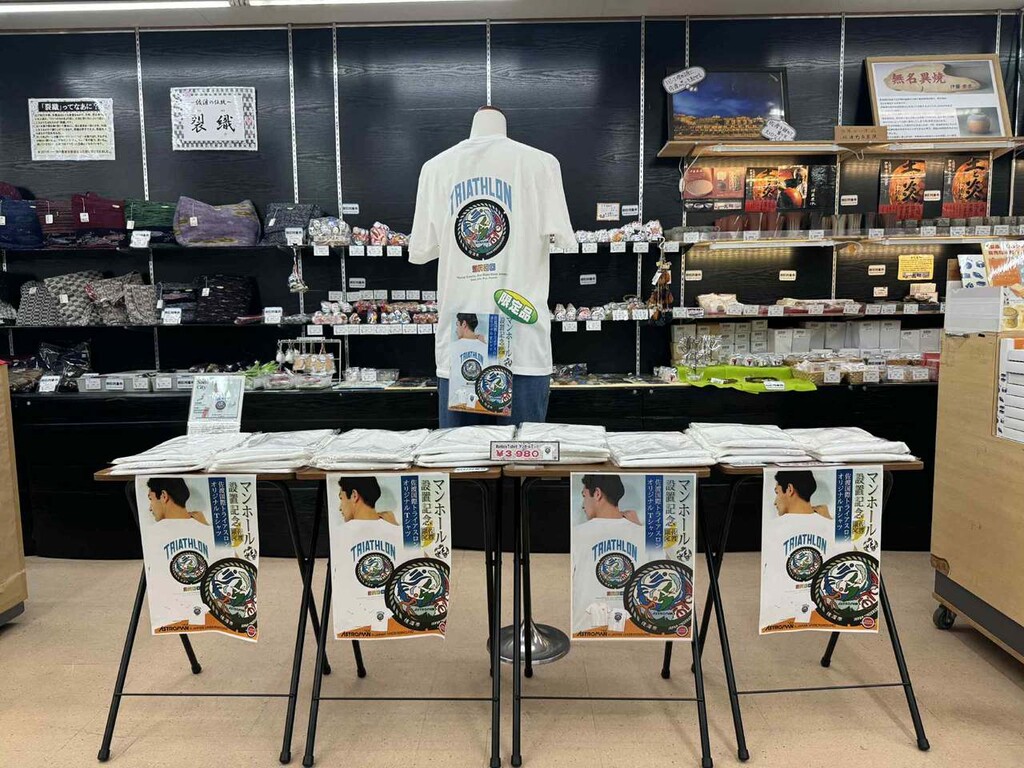 また、設置を記念して「佐渡市オリジナルマンホールTシャツ(佐渡国際トライアスロン)」を販売し、多くの来場者が手に取った。