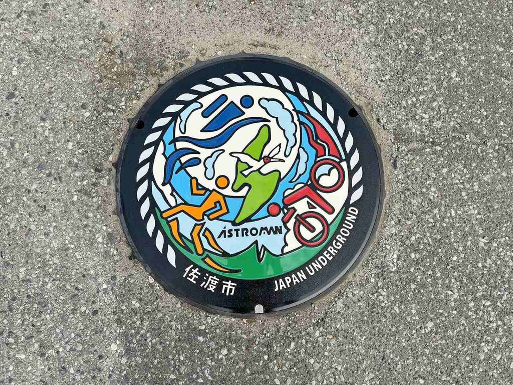 オリジナルデザインマンホールは、2025年9月、佐渡国際トライアスロン大会のスタート・ゴール地点に近い「あめやの桟橋」付近に設置された。