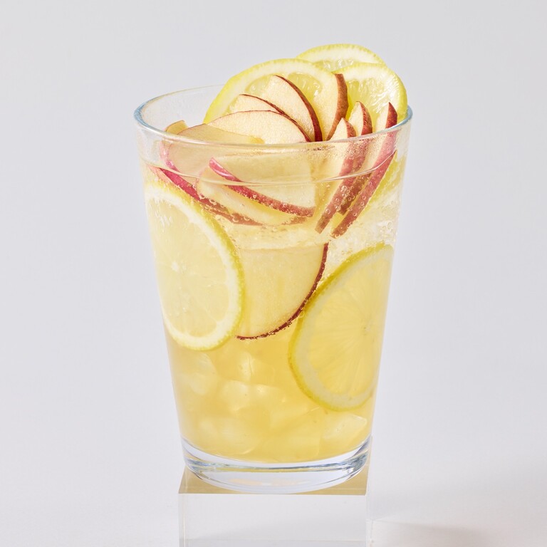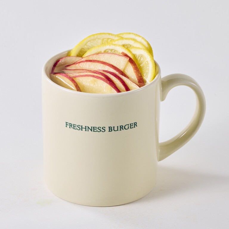 シャキッとした食感と、みずみずしい甘さが特長の国産フレッシュりんごを、店内で一つひとつ丁寧にカットし、自家製ジンジャーソースとハチミツにじっくりと漬け込むことで、素材の風味を丁寧に引き出した。同じくハチミツに漬け込んだレモンスライスを合わせ、りんごのすっきりとフルーティーな甘みと芳醇な香り、レモンの酸味、ピリッと辛いジンジャーのスパイス感が味わえる。