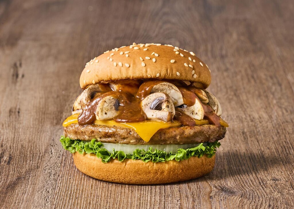 毎年秋に登場し、好評を博している「マッシュルームチーズバーガー」。2025年は、世界三大きのこである「ポルチーニ」「トリュフ」を使用した贅沢なソースを組合わせ、芳醇な香りと深い旨みがSNSを中心に話題となっている。