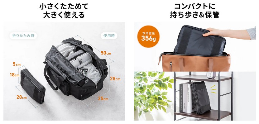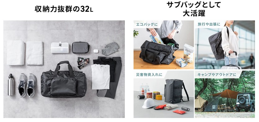 サンワサプライ株式会社が運営している直販サイト『サンワダイレクト』は、使うときは大容量、使わない時はコンパクトに折りたためる2WAY折りたたみボストンバッグ「200-BAGBP036BK」を発売した。