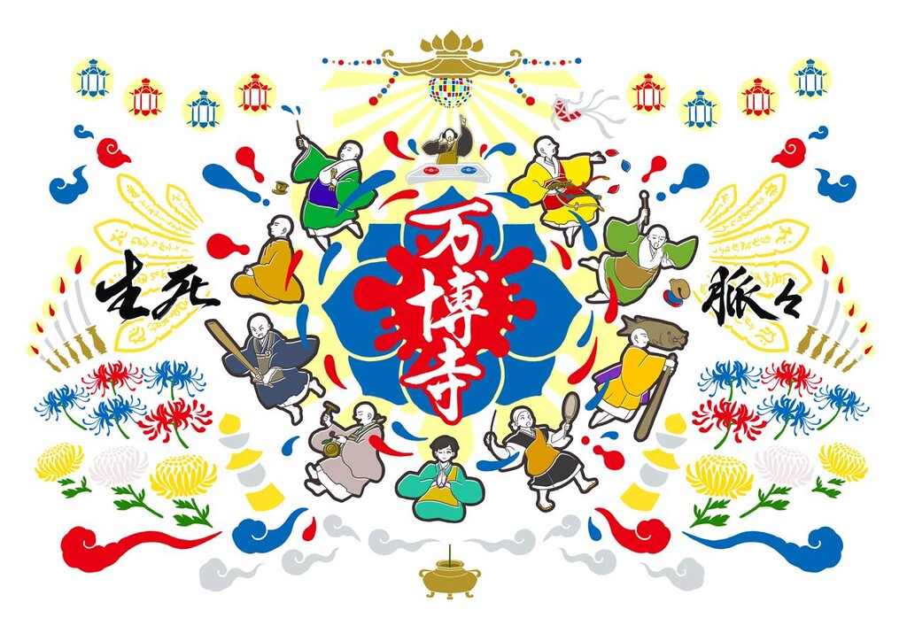 大阪・関西万博のテーマは「いのち輝く未来社会のデザイン」。その公式キャラクター「ミャクミャク」は、私たち人間が受け継いできたDNAや技術、歴史や文化を未来へとつなぐ存在として表現されている。この世界観に呼応し、万博寺では「生死脈々(しょうじみゃくみゃく)」というキャッチコピーを掲げている。「生死脈々」とは、生と死が脈々とつながり、絶え間なく受け継がれていくことだ。仏教では、いのちを「生と死の循環」と捉え、生と表裏一体で「死をどう受け止めるか」という問いを重視している。