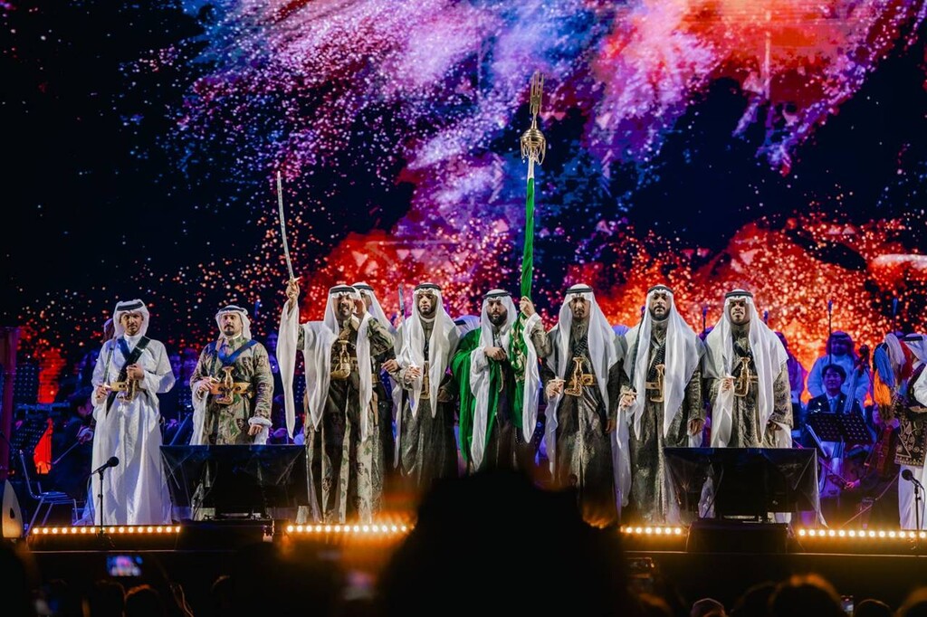 ナショナルデーの祝祭は、Expoアリーナ・Matsuriでの華やかな夜のエンターテインメントと音楽で幕を閉じた。このコンサートでは「アルダ」のリズムをフィーチャーしつつ、新進サウジアラビアのアーティストのパフォーマンスも交え、伝統と現代の創造性が融合した。また、日本の能楽師とサウジのネイ奏者、日本の太鼓奏者とサウジのサムリ奏者による共演も披露された。イベントのハイライトは、World Expolympics賞で「ベスト・プレゼンテーション賞」にノミネートされたダイナミックな作品「水の物語」のナショナルデー特別版であった。ライブパフォーマンスと没入型プロジェクションマッピングを融合させ、日本の海女とサウジアラビアの真珠ダイバーとの共通点を描き出し、世界最大の真珠を探すダイバーの旅を表現した。