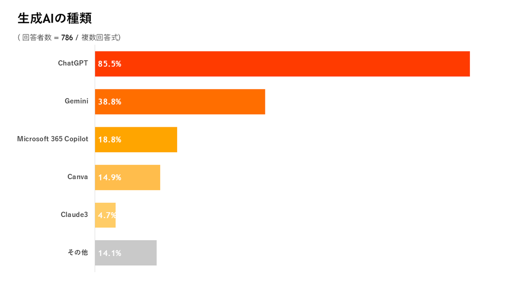 ■使っている生成AIは「ChatGPT」が85.5%、「Gemini」は昨年の約4倍に増加。活用方法について、「情報収集」「物件などの紹介文作成」「顧客対応などの文章作成」への活用が目立つ