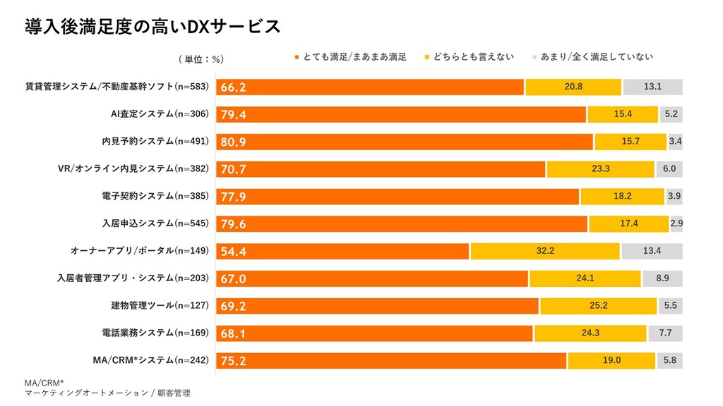 ■満足度が高いのは「内見予約」「入居申込」「AI査定」「電子契約」のシステム