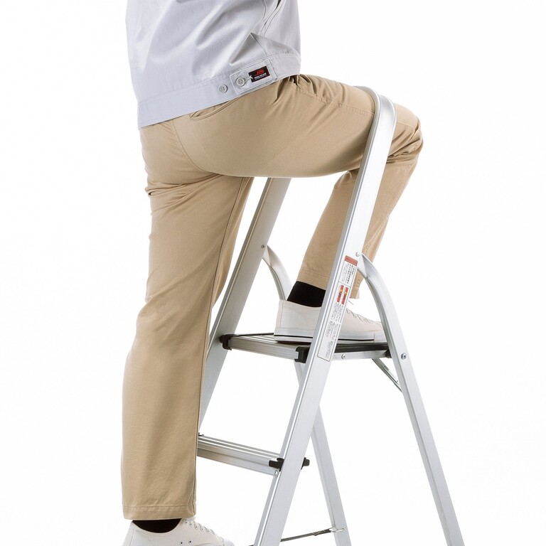 脚立上部には、上った際に握れる取っ手付き。バランスを取りやすく、安定して作業が行える。