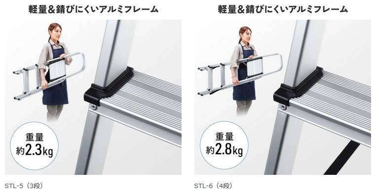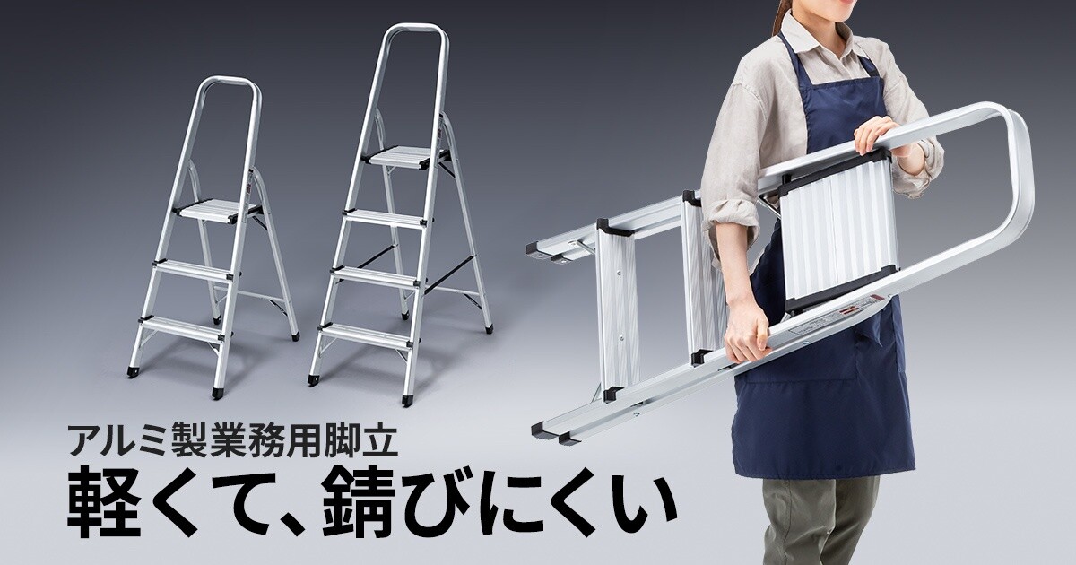 サンワサプライ株式会社は、高い場所での作業を安全にサポートする、取っ手付き高耐荷重アルミ脚立「STL-5(3段)」と「STL-6(4段)」を発売した。丈夫で軽いアルミフレーム製なので、設置は簡単、移動も便利だ。収納時には折りたたんでスリムになり、省スペースでの収納ができる。