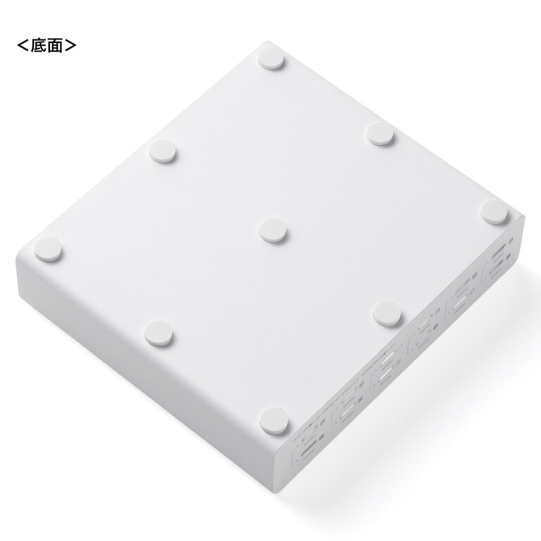 本体底面には滑り止めが付いており、ケーブルを抜き差しする際にもしっかりと安定する。