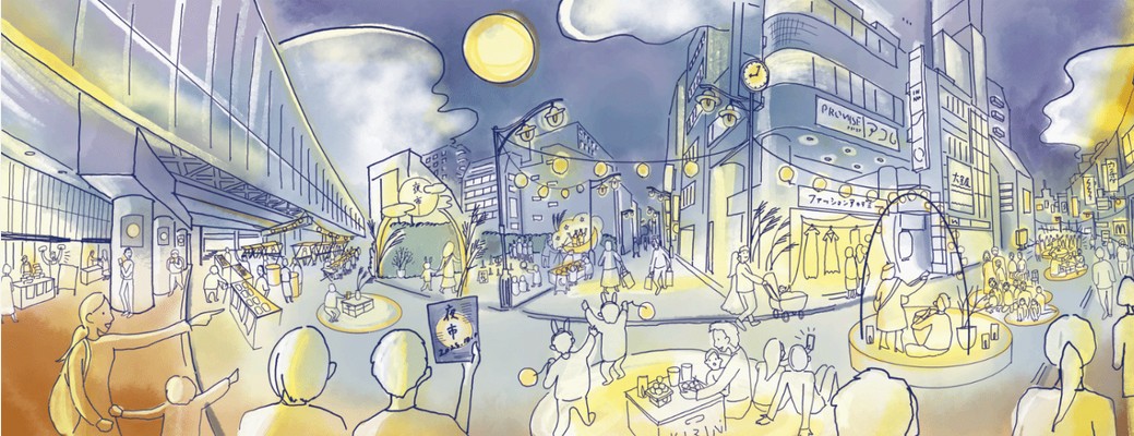 今回のイベントは「にぎわいと滞在の新しい形の体験」だけでなく、吉祥寺パークエリアの将来のまちづくりを考えるきっかけとする社会実験です。南口駅前広場の整備後に、歩行者空間化されたパークロードの姿を中心に、吉祥寺駅南口の公共空間が将来どのような使われ方ができるのか、市民の皆様と共に、3年間かけて探っていきます。より多くの方に吉祥寺らしい多様な過ごし方を体験して頂き、まちの将来を想像する機会にしたいと考えています。一緒に想像してみていただければ幸いです。