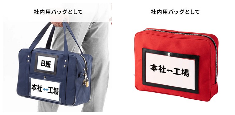 透明ポケットで送り先・送り元をひと目で確認できるので、社内便用バッグとしても活躍する。