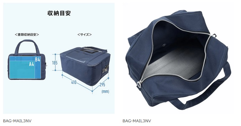 BAG-MAIL3NVはB4ファイルが収納できる大きめサイズ。使用しない時はコンパクトに折りたためる。