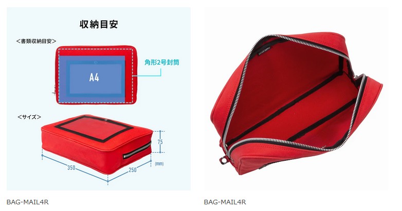 BAG-MAIL4Rは角形2号封筒・A4ファイルが収納できるサイズです。入れたい荷物や書類をたっぷり収納できる。