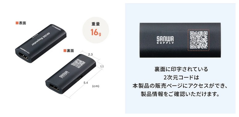 サンワサプライ株式会社が運営している直販サイト『サンワダイレクト』は、4K/60Hz・HDR対応で、最大40mまでHDMI信号を高画質のまま延長できる、小型で電源不要のHDMI中継アダプタ「500-HD034BK」を発売した。