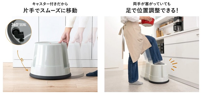 片手でスムーズに移動差せることが出来て、両手がふさがっていても足で移動させることができる。