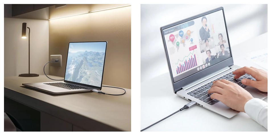 Type-C接続だと限られたType-Cポートを塞いでしまいるが、本製品ならパソコンのType-CポートをPD給電ポートや映像出力ポートとして活用することができる。