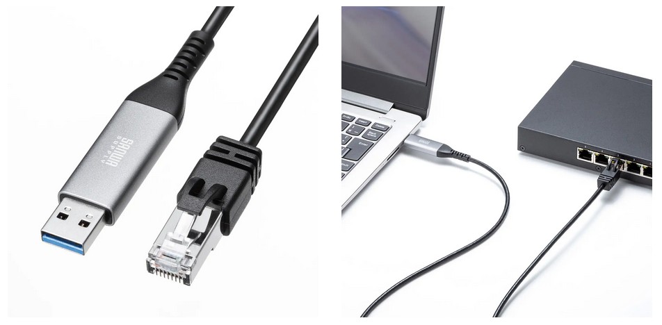 サンワサプライ株式会社は、USB AポートをLANポートに変換し、有線ネットワークへの接続を可能にする「KB-SL6ALAN0〇BKシリーズ」を発売する。LANポート非搭載のパソコンでも簡単に有線ネットワークに接続でき、最大1Gbpsの高速データ通信とMACアドレスのパススルー機能に対応している。ケーブル直径は約4.2mmの細径でやわらかく、取り回ししやすい仕様で、持ち運びにも便利だ。