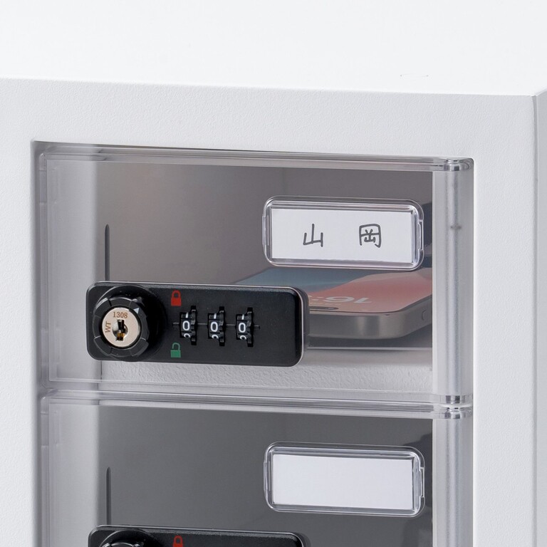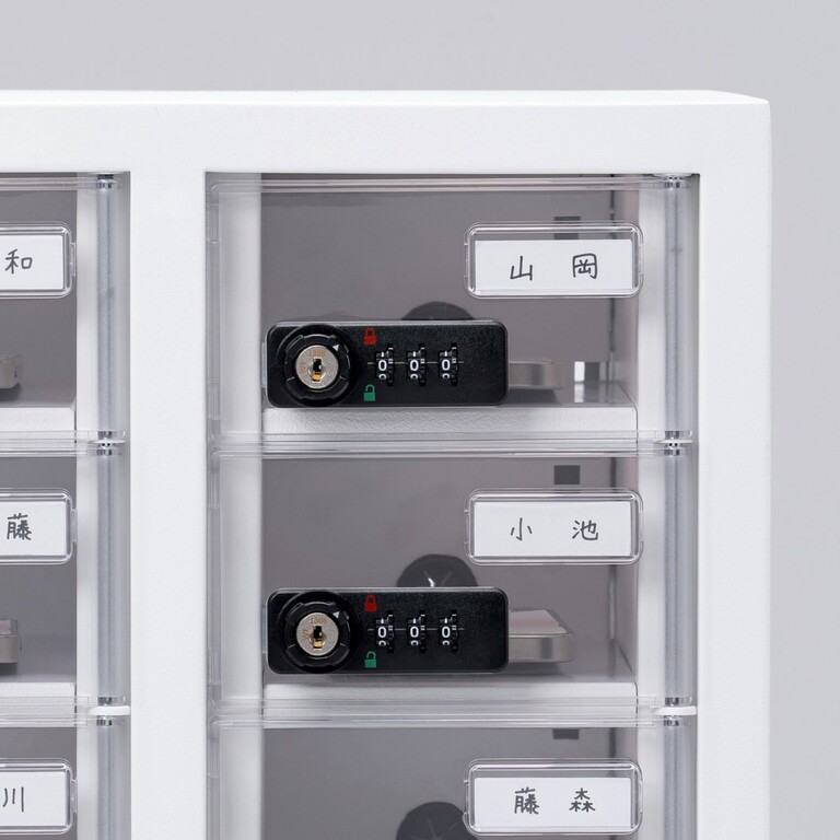 個別に暗証番号を設定できるダイヤル錠なので、使用者が鍵を持つ必要がなく、紛失の心配がない。万が一番号が分からなくなっても、管理者が番号検索キーを使用して暗証番号を確認できるので安心だ。