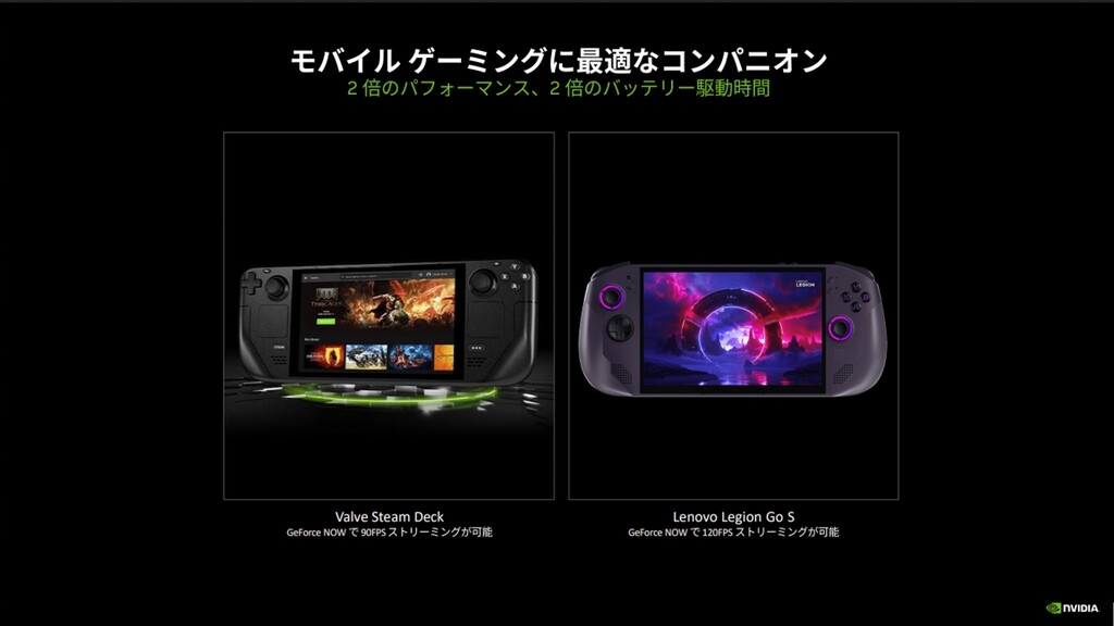 対応デバイスも大幅に拡充された。ポータブルゲーミングPCでは、Steam Deckで最大90fps、Lenovo Legion Goで最大120fpsのストリーミングに対応している。