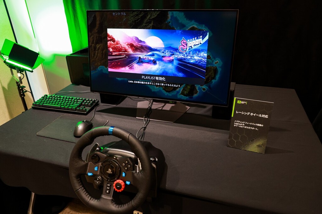 今回の会場では、『ザ・クルー:モーターフェス』をレーシングホイールで操作することができた。高速で画面が切り替わるレーシングゲームでありながらも映像は非常に滑らかで、レーシングホイールでの操作も違和感がなかった。パッド操作に比べて臨場感が大きく増し、よりリアルなドライビング体験が得られた。