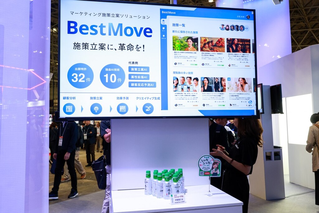 「マーケティング」では、「購買傾向分析データ×生成AIによるマーケティング施策立案」と題して展示。クレジットカード/ID-POSから得られる購買傾向分析データを元に、顧客の趣味嗜好性を可視化する、という顧客分析や、ターゲット顧客の特徴・潜在ニーズをとらえ、ニーズをとらえやすい施策案を自動で立案するという施策立案などが紹介されていた。