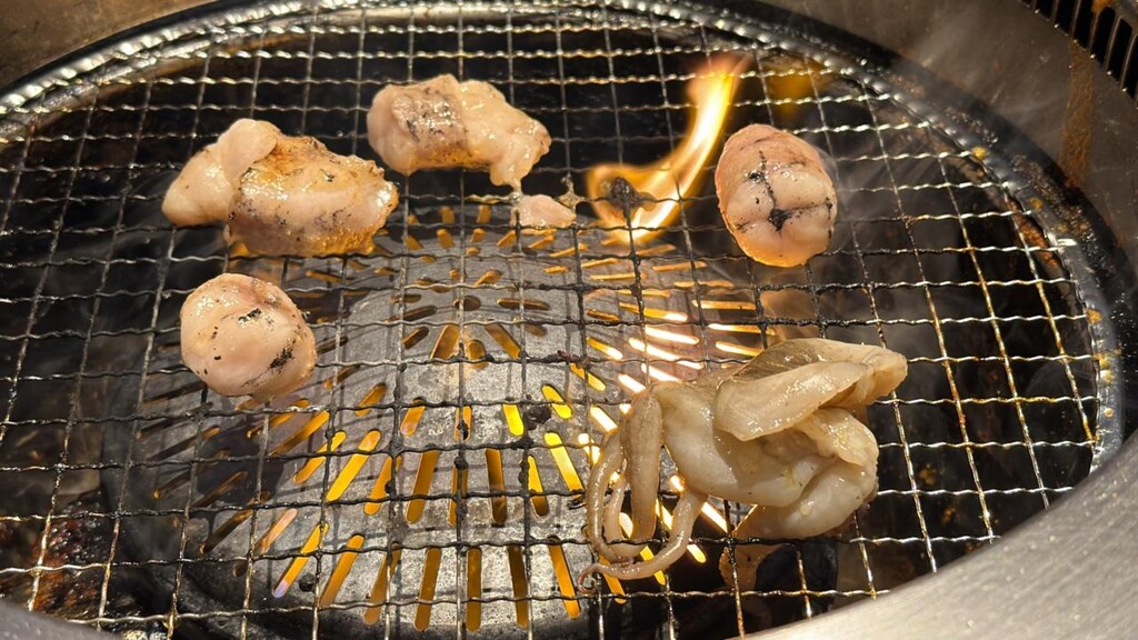 七輪の上で踊るように焼き上がる、イイダコのライブ感。プリッと弾む食感と、牛角自慢のつけダレで旨みが止まらない!