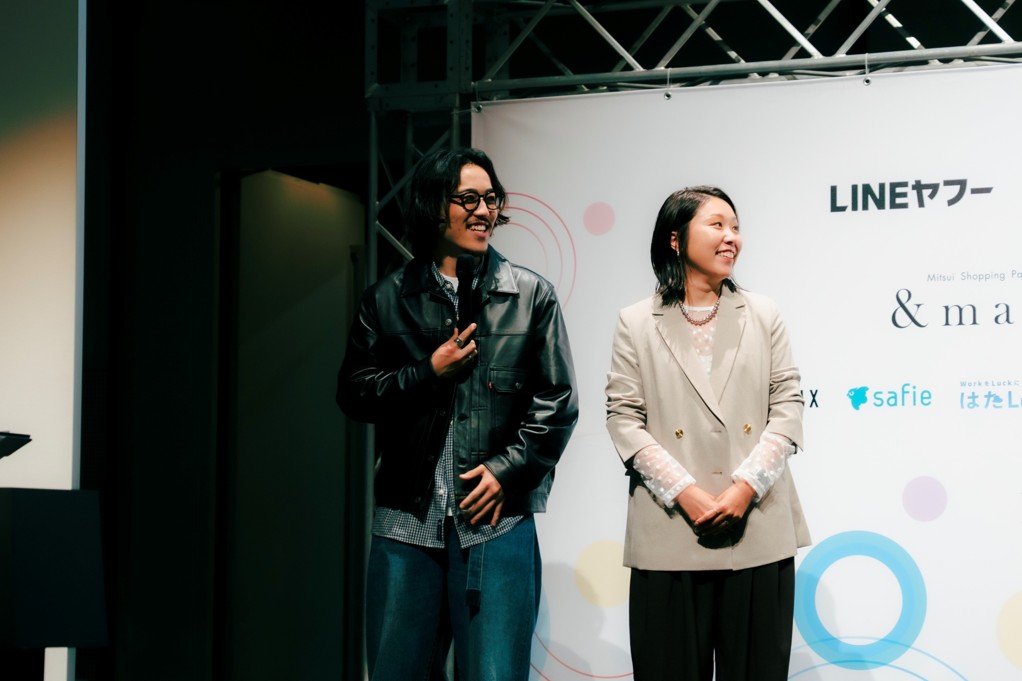 コットンお二人の衣装は、ファイナリストのLevis(リーバイス)のYu-ta(ゆうた)さんとOPAQUE.CLIP(オペークドットクリップ)のyuka(ゆか)さんにコーディネートを組んでいただいたため、お二人も登壇した。