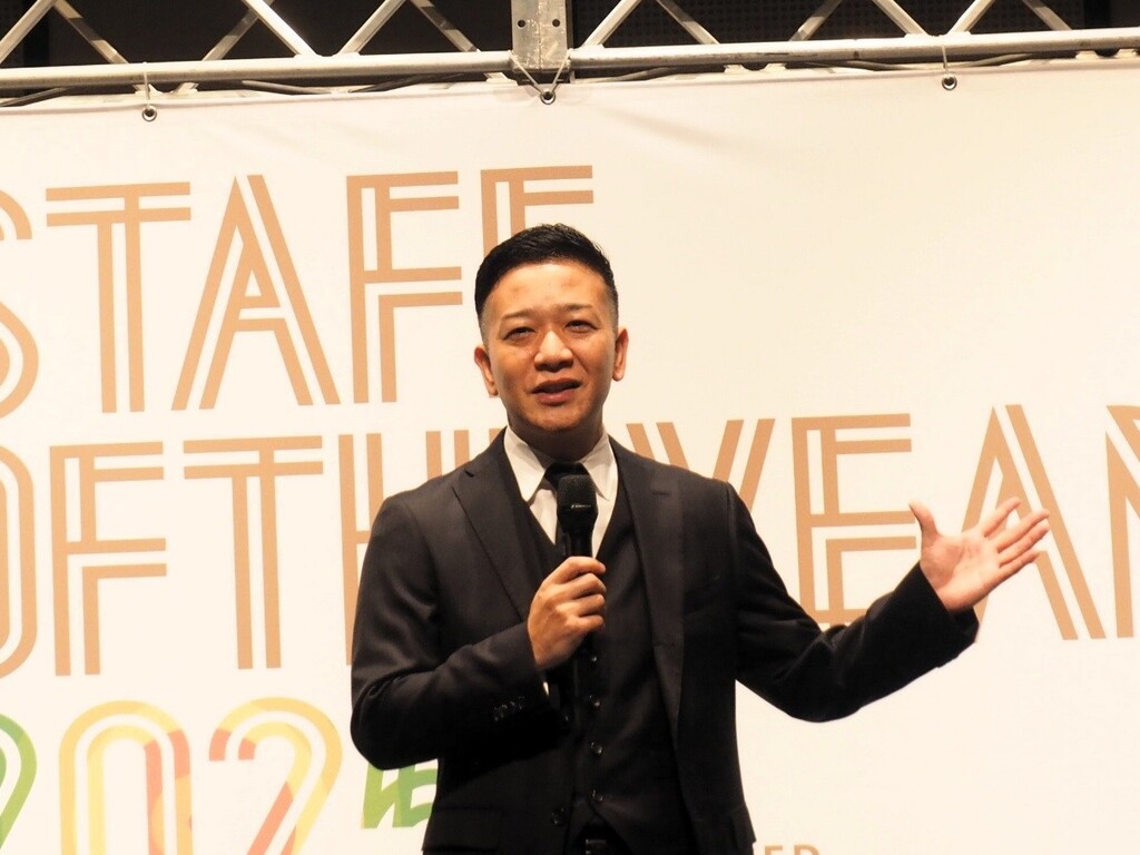 まず、「STAFF OF THE YEAR(以下、SOTY)」を主催するパニッシュ・スタンダード代表取締役の小野里寧晃氏が登壇し、SOTYの歩みや込めた想い、そして「SOTY 2025」の見どころについて次のように語った。