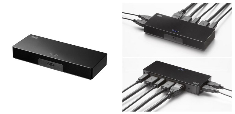1組のDisplayPortディスプレイ・USBキーボード・USBマウスを、2台のパソコンで使用できる。