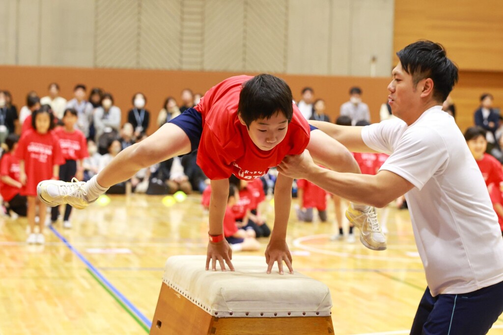 跳び箱の練習が進むにつれ、補助を受けながらも勢いよく跳べる子どもが増えていった。