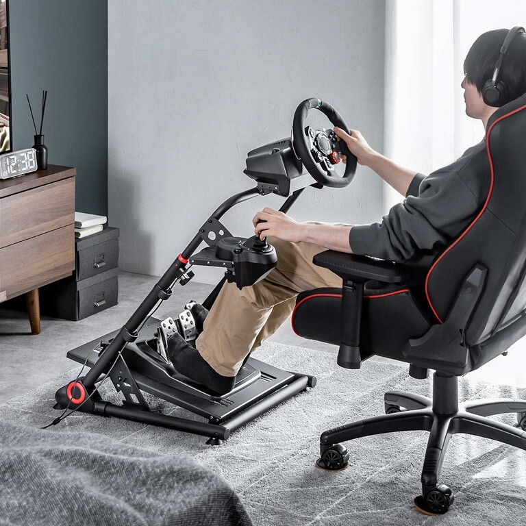 本製品は、折りたたんで収納することができるレーシングコックピット。