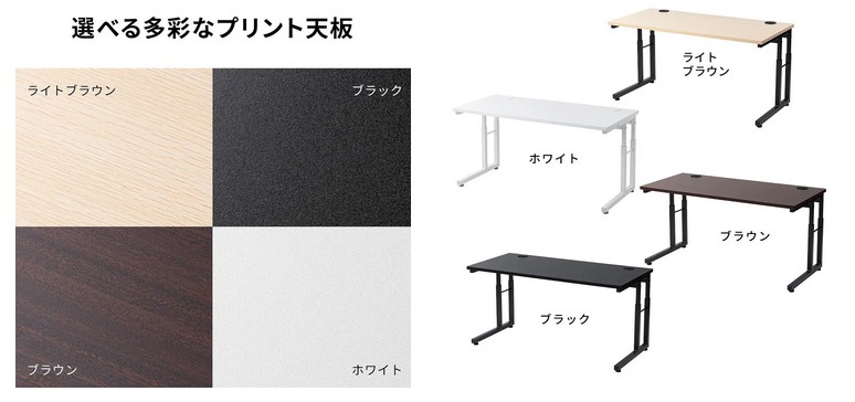 ブラック・ホワイト・ブラウン・ライトブラウンの4色をラインナップ。モダンなリビングからナチュラルなワークスペースまで、インテリアに合わせて選択できる。実用性とデザイン性を両立した、あなたの部屋になじむ理想のデスクだ。