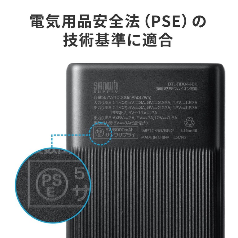 本製品は電気用品安全法(PSE)の技術基準に適合した、安全性の高い製品だ。