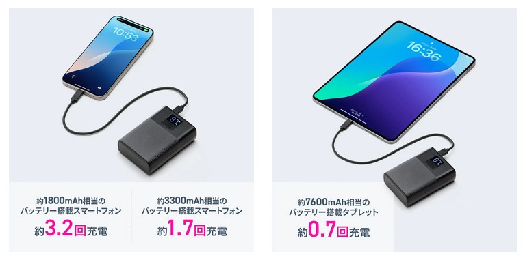 ■容量10000mAhのモバイルバッテリー