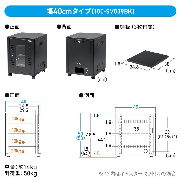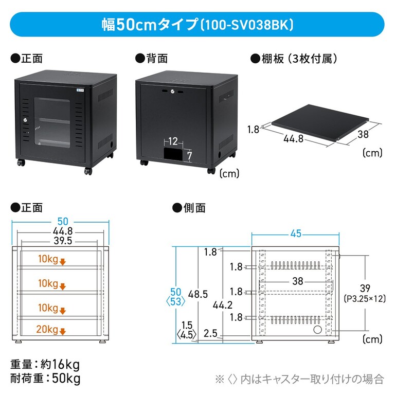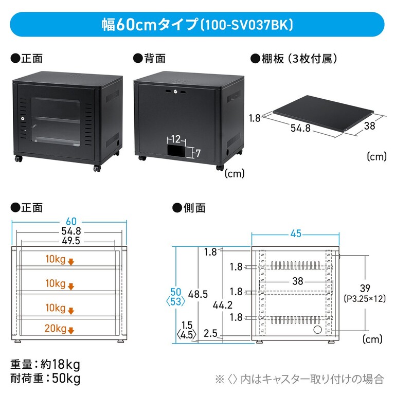 ■中型サイズの機器収納ボックス「100-SV037BK(幅60cm)」