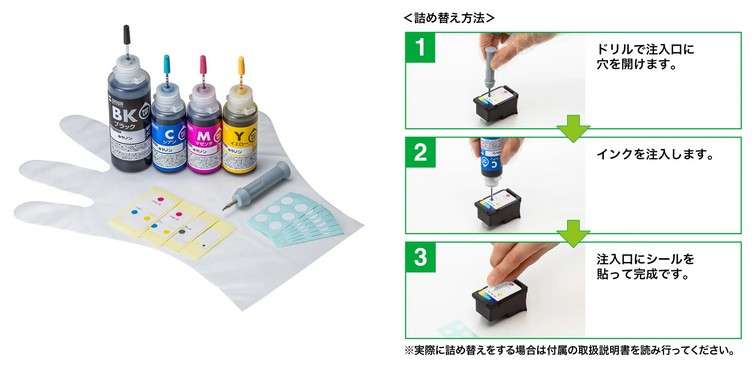 工具を別途用意する必要がなく、すぐに使える詰め替えインク。