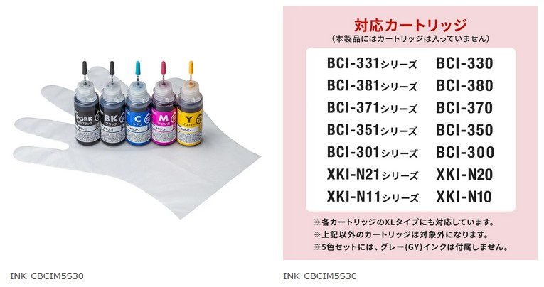 サンワサプライ株式会社は、キヤノンプリンターに対応する詰め替えインク「INK-CBCシリーズ」を発売した。キヤノンの幅広い種類のインクや、独立型・一体型のほとんどのカートリッジ型番に対応する。