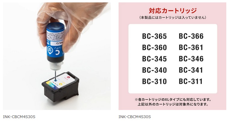 ■複数色一体型カートリッジのほとんどの型番に対応「INK-CBCM4S30S」「INK-CBCMPGB60S」