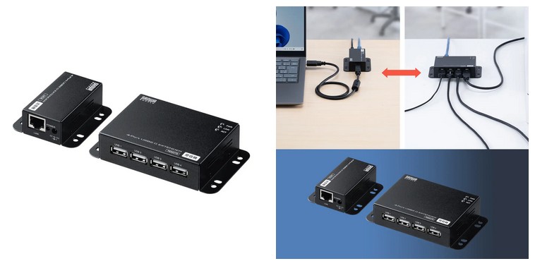 4台のUSB機器をLANケーブルで最大50m延長!USB2.0エクステンダー