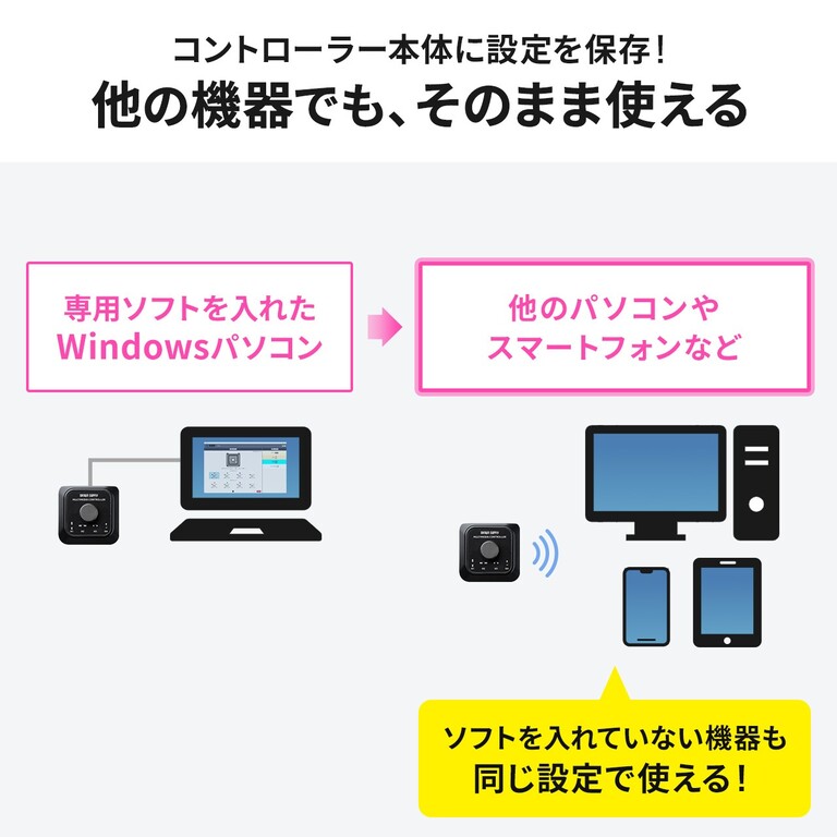 プログラマブルボタン/ページターナー(楽譜ページめくり)の2WAYで使えるマルチメディアコントローラーになる。