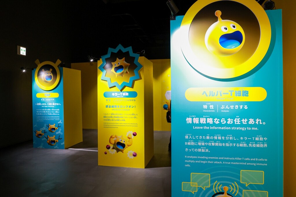 「からだウォーズ」は展示物や体験できるゲームを通じて、免疫の働きを体感しながら学べる内容で、からだの中で繰り広げられる"免疫"の戦いをテーマに、「免疫細胞軍」と「ウイルス連合軍」に分かれて展開される。